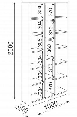 • В крайних секциях по 5 полок, из которых: три - съемные, две - жесткого крепления (через одну).