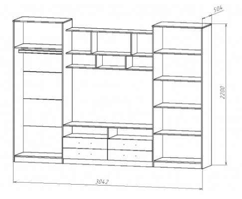 Наполнение: Полки + выдвижные ящики + продольная штанга