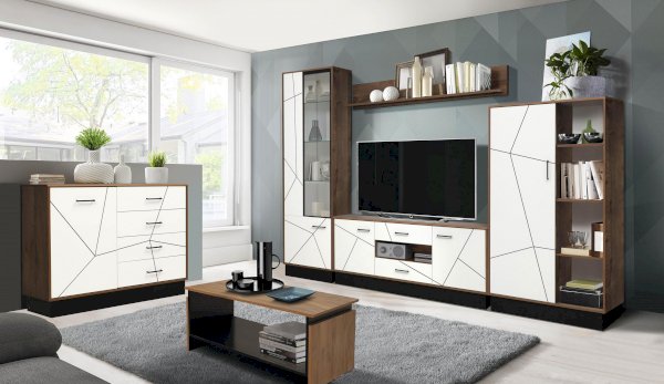 Данный модуль разделен на две части, у каждой из которых свой функционал. Справа расположены четыре выдвижных ящика – один под другим. Слева – за распашной дверцей – полки. Целых четыре ящика позволяют разместить абсолютно разные сегменты вещей. Это могут быть и документы, и сложенные вещи, и постельные принадлежности, а нижний ящик подойдет для обуви. Если поставить комод в прихожей и сверху повесить полку 54.09, получится отличная прихожая – по ширине эти два модуля совпадают и визуально будут смотреться комплектом.  Ящики снабжены шариковыми направляющими, которые обеспечивают плавный ход выдвижения.