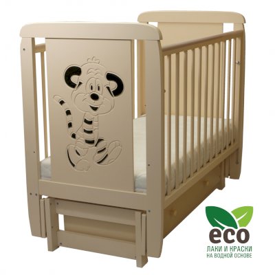 Кроватка декорирована 3Д-рисунком "Тигренок".