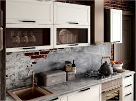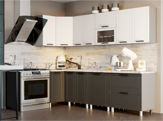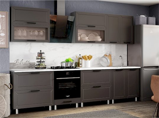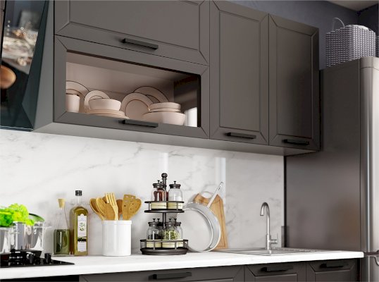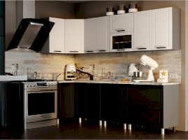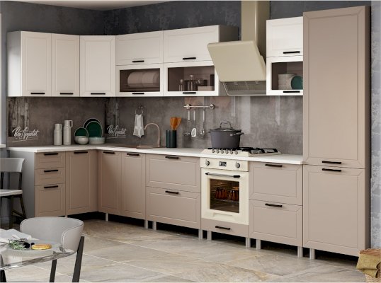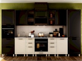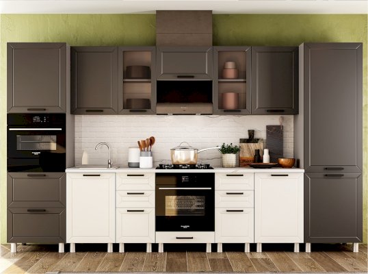 Классическая кухня идеально вписывается в любой интерьер и по праву считается заветной мечтой любой хозяйки. Она никогда не выйдет из моды и подойдет всем, кто хранит верность традициям и не разменивается на попытки угнаться за скоротечной модой. Брендовое цветовое решение фасада делает его актуальным в любом интерьере, а декоративная отделка добавляет внешнюю привлекательность всему комплекту. Остроконечная фрезеровка по периметру фасада придаёт кухне особую элегантность, отчего общий интерьер комнаты становится более фактурным.