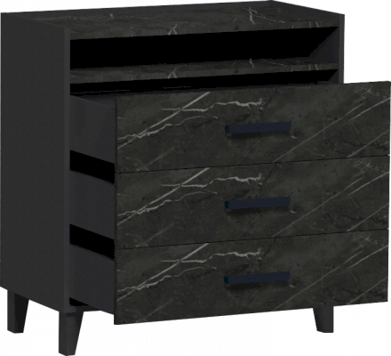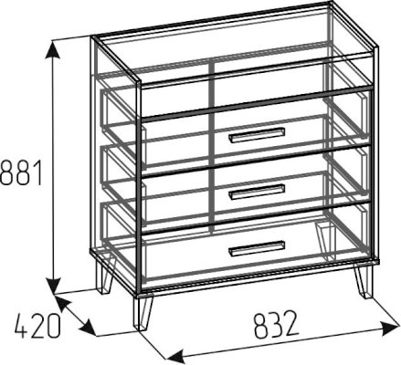 Комод Айрис 455 с нишей и 3 широкими ящиками на шариковых направляющих - выбор обладателей просторных спален. Благодаря его оптимальным габаритам (высота 881 мм, ширина 832 мм, глубина 420 мм), Вы сможете аккуратно хранить в нем все необходимое. Ящики выдерживают нагрузку до 10 кг каждый. Высота опор 120 мм дает возможность Вашему роботу-пылесосу беспрепятственно перемещаться по комнате в процессе уборки.