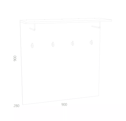 Вешалка из коллекции Санти выполнена в виде настенной панели с тремя крючками. Сверху модуля располагается полка для головных уборов и аксессуаров. Вешалка обеспечит быстрый доступ к самым нужным предметам гардероба.