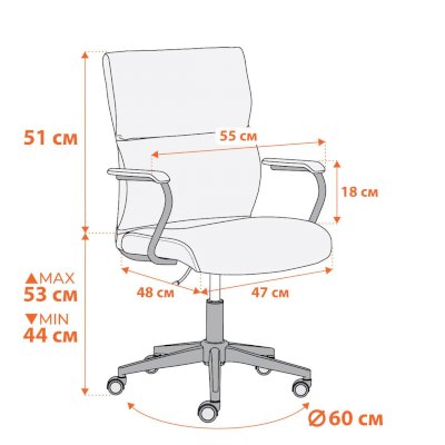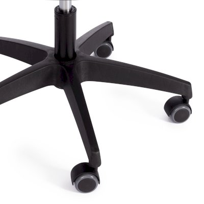 5-лучевая полиамидная крестовина диаметром 650 мм устойчива и надежна. Ролики с полиуретановым нанесением обеспечивают бесшумное и плавное передвижение, подходят для паркета и ламината. Диаметр штока – 11 мм. Газлифт 3 класса с ходом 100 мм позволяет легко регулировать высоту сиденья для достижения удобного положения. Фиксированные подлокотники из металлической трубы с порошковым покрытием и декоративной пластиковый накладкой обеспечивают дополнительный комфорт, помогают снизить нагрузку с поясницы и спины. Сиденье из фанеры 10 мм и спинка с каркасом из металла с наполнителем из ППУ плотностью не менее 22 кг/м³ обеспечивают оптимальную поддержку при длительном времяпрепровождении за компьютером. Обивка из флока плотностью 320 г/м² с водоотталкивающей пропиткой не только приятна на ощупь, но и устойчива к износу, что делает эту модель идеальной для частого использования.