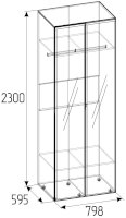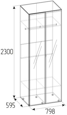 Шкаф комплектуется стационарной штангой длиной 757 мм, на которой можно разместить до 10 плечиков с верхней одеждой, а также двумя полками. Регулируемые опоры компенсируют незначительные неровности пола.