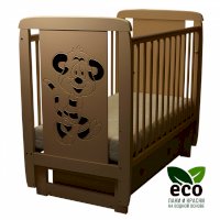 - Передняя стенка кроватки съемная, оборудована скрытым механизмом опускания