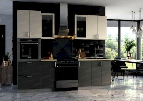 Кухня Хайтек изговаливается также в цветах серый/лайм глянец; серый/крем брюле глянец; серый/мокко глянец; серый/лайм глянец; серый/софт светлый. Модули в этих цветовых решениях вы сможете найти в нашем интернет-магазине.