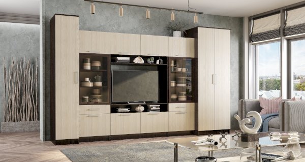 Организовать хранение вещей в комнате или гостиной можно с помощью пенала Фиеста. Модель представляет собой пять глубоких полок, спрятанных за распашной дверцей светлого цвета лоредо. Корпус изделия выполнен из ЛДСП в цвете венге. Фасад дополнен удобной удлинённой ручкой.