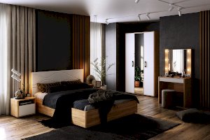 Этот трехстворчатый шкаф из серии Зара 2 идеально подойдет для тех, кто ценит как элегантность, так и практичность. Прекрасно дополнит интерьер вашей комнаты благодаря своему современному и стильному дизайну. Отличительной чертой дизайна являются закругленные углы, что обеспечивает безопасное использование. Кроме того, центральный фасад декорирован зеркалом, а контраст между цветами корпуса и фасадов придает шкафу особую эксклюзивность.