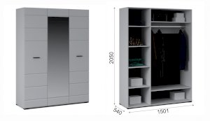 Компактный шкаф Йорк – это решение для небольшой спальни, гостиной или прихожей. Он выполнен в современном стиле – сочетает в себе функциональность и эффектный внешний вид: горизонтальная фрезеровка фасадов, контрастные черного цвета ручки и задняя стенка. Глянцевые белые фасады High Gloss из МДФ и зеркало в полный рост наполняют комнату светом, делают ее просторнее и ярче. Внутри предусмотрены секции для белья и большое отделение со штангой. Идеально компонуется со всеми модулями системы Йорк.