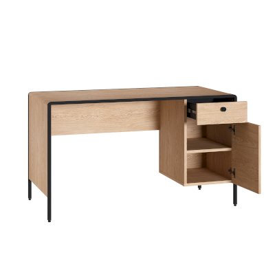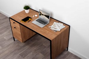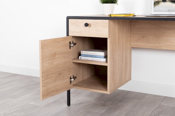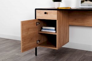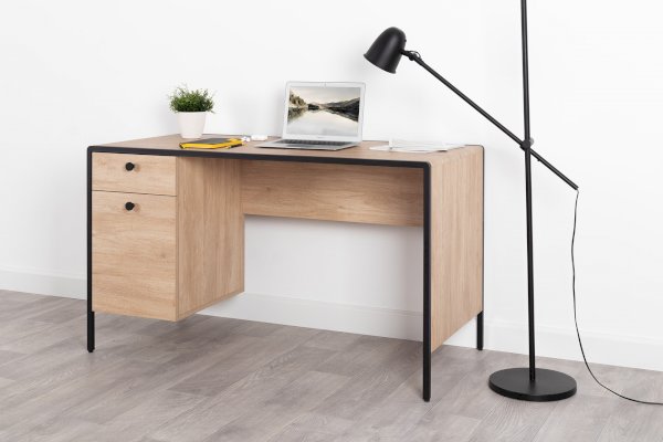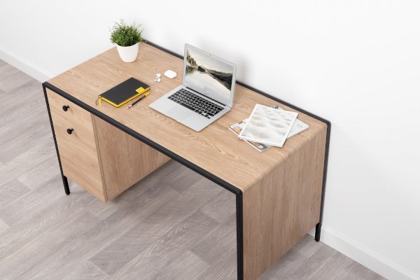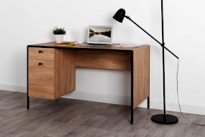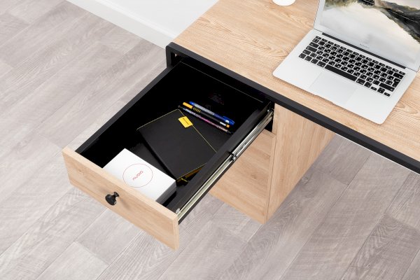 Стильный и эргономичный письменный стол Брюс – ваше комфортное рабочее место. Каркас из металла, столешница из МДФ с закруглением и тактильно приятные металлические ручки с накаткой – визитная карточка модели. Также стол имеет регулируемые опоры и ящики с направляющими полного выдвижения.