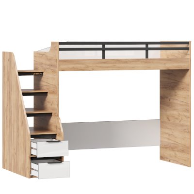 • Интегрированная лестница шириной 444 мм, 5 ступеней с планками под каждой. Планка чёрного цвета, характерный декоративный элемент коллекции Урбан, служит для усиления ступеней