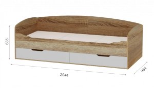 Топчан в скандинавском стиле со скругленным изголовьем и высокой спинкой имеет два больших ящика, с помощью множества роликов его легко выдвинуть. Для безопасности и удобства открывания выдвижной ящик вместо ручек оснащен выемками на лицевой части фасада. Высокая спинка в топчане предохраняет от соприкосновения с холодной стеной во время сна. Пользоваться кроватью может взрослый и ребенок любого возраста, так как она имеет размеры стандартной кровати 90х200см, устойчивую конструкцию и нейтральный для интерьера цвет. Идеально компонуется со всеми модулями системы Стелс. Мебель выполнена из высококачественных экологичных материалов.