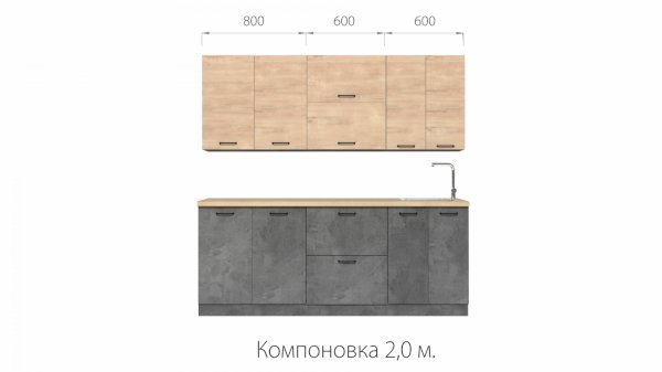 Кухонный гарнитур Ника-2 фасад "Loft" 2,0 м