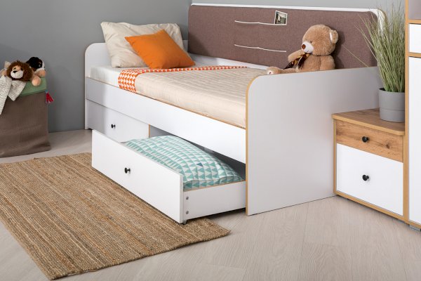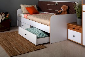 • Кровать укомплектована основанием-настилом. Плоское сплошное основание представляет собой поверхность, изготовленную из строганных досок, фанеры или ДСП (изготавливается из прессованных древесных стружек). Обрабатывается защитными и декоративными средствами, крепится к каркасу. Сплошное основание тяжелее, чем ортопедическое, менее мобильное. Сплошная конструкция пригодна для эксплуатации в комплекте с любыми типами матраса, хотя ортопедические изделия в таком случае частично теряют свои анатомические свойства.