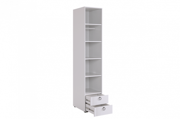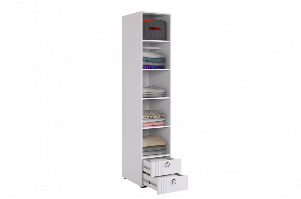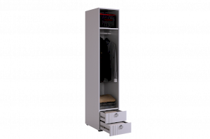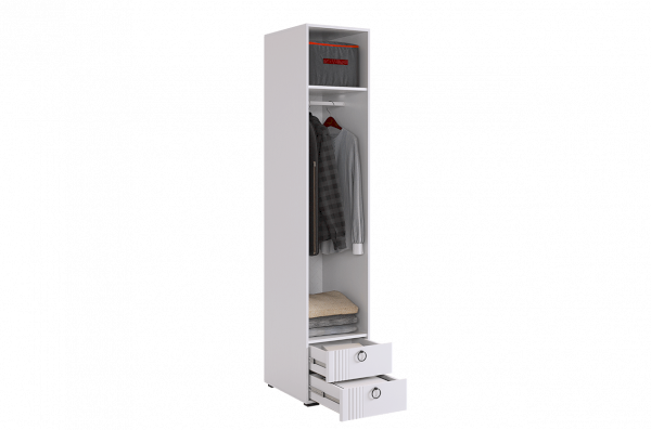 Гибкость и функциональность - еще две характеристики, которые делают Ева шкаф однодверный 101.01 особенным. Он оснащен одной секцией со штангой и дополнительными полками, которые можно легко менять. Вы можете использовать полки для складирования своих вещей или убрать их, чтобы повесить одежду на штангу. Кроме того, присутствие двух выдвижных ящиков на шариковых направляющих дает вам возможность удобно хранить мелкие предметы.