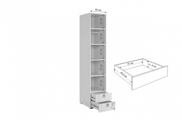 Сочетание лдсп белого дерева с матовым белым пвх облицовкой на фасадах придает этому шкафу изысканный и современный вид. Фрезерованные вертикальные полосы на фасаде добавляют специальный шарм. Кроме того, качество материалов использованных в производстве - лдсп 16 мм корпуса и мдф с пленкой пвх фасадов, позволяет гарантировать долгий срок службы этого шкафа.
