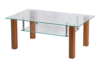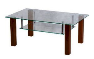 Журнальный стол - стеклянная столешница с полкой, ножки деревянные с фетровыми подпятниками.