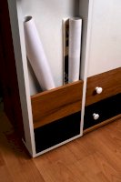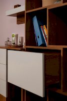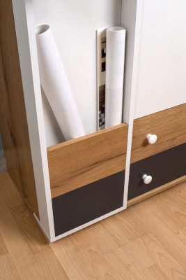 Подростковая кровать-тахта с большим выкатным ящиком на роликах, который можно использовать как место для хранения или как дополнительное спальное место. Он открывается за ручку-карман. Такой импровизированный карман дает возможность аккуратно сложить необходимые перед сном вещи: книгу, телефон, любимую игрушку.