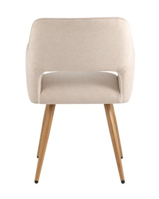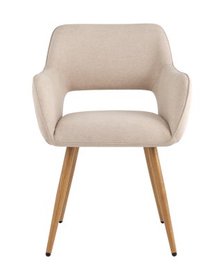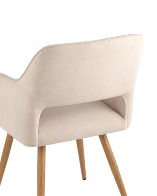 Стильный и мягкий кухонный стул имеет широкую эргономичную спинку и удобные подлокотники. Обивкой послужила высококачественная плотная рогожка. Ножки металлические с принтом под дерево.