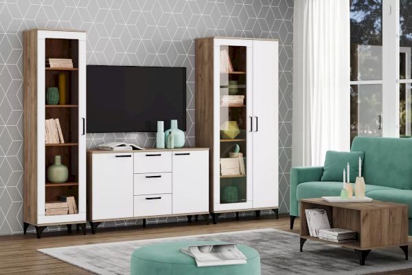 "МАРСЕЛЬ" - оригинальная коллекция мебели, которая сделает ваш интерьер современным и стильным. Благодаря высоким ножкам и длинным ручкам он привнесет в комнату нотку ретро-атмосферы. Теплый оттенок дерева сделает комнату более уютной. Витрина является элементом коллекции, характеризующейся гармоничным сочетанием эффекта дерева с темными и светлыми фасадами.