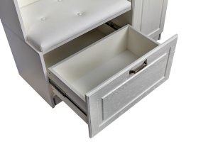 Фурнитура: Распашные фасады на четырёхшарнирных петлях, подъёмные фасады на газлифтах, выдвижные ящики на шариковых направляющих полного выдвижения.