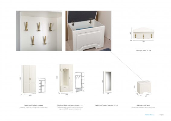 Популярный колониальный стиль, хорошо зарекомендовавший себя в гостиных, теперь доступен и для прихожей. Эти модули подходят к модулям гостиной и спальни Ливерпуль, делаются в тех же декорах, в том же стиле и могут компоноваться друг с другом.