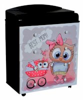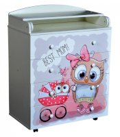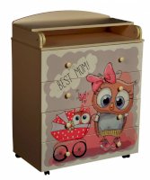 Пеленальный комод 800/4 Lilu 6 отличается привлекательным дизайном с использованием тематических детских принтов. В конструкции изделия предусмотрены 4 маленьких передвижных колеса, несколько вместительных ящичков на шариковых направляющих и откидывающаяся пеленальная столешница. Детский пеленальный комод, декорированный красочным рисунком, вмещает в себя постельные принадлежности, средства гигиены, распашонки, подгузники, игрушки, ползунки и другие личные вещи ребенка. Гладкая столешница идеально подходит для пеленания ребенка, а колесики позволяют быстро перемещать комод.