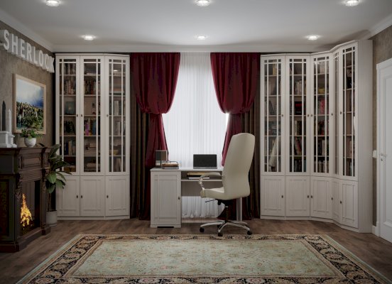 Библиотека выполнена в одном декоре и стиле с гостиной SHERLOCK — Ясень Анкор Светлый. Поэтому из её модулей Вы можете организовать небольшое функциональное рабочее место даже в гостиной. Идеальным местом для обустройства библиотеки в квартире является домашний кабинет. В нем Вы сможете заняться важными делами в спокойной обстановке или просто почитать любимую книгу.
