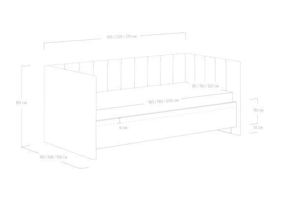 Спальное место: 80/90/120х180/190/200 см