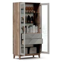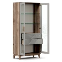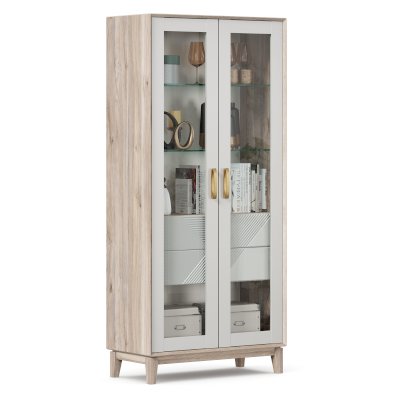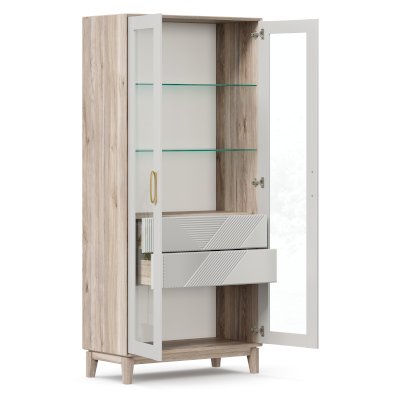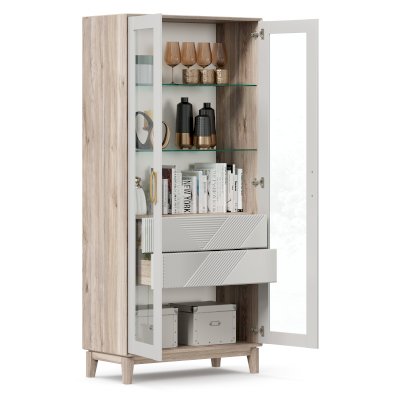 • За сборными распашными дверями со стеклом две стационарные горизонтальные перегородки и две съемные стеклополки 6 мм