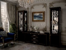 Гостиная "Парма" одна из самых красивых серий модульной мебели и создана для истинных ценителей роскоши и элегантности. Правильные геометрические формы украшены изящными стеклами с эксклюзивной гравировкой, создающих  сияние, подобное бриллианту и добавляющих винтажной старины в современном исполнении.