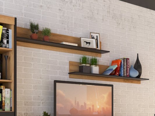 Полка навесная Техно Дуб Крафт белый/Серый шифер 678030