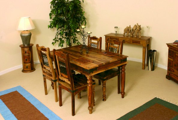 Изысканный обеденный стол из коллекции BOMBAY, выполненный из массива палисандра, способен стать не просто частью комнаты, но и задать тон вашему интерьеру. Элегантные резные ножки ручной работы и винтажная фурнитура из черного металла привносят в дизайн живости и служат ярким акцентом изделия. Размеры стола позволяют с удобством разместить от четырех до шести человек. Деревянная столешница из массива палисандра, обработанная прозрачным лаком, зачаровывает благородством рисунка, изысканностью материала и красотой. Модель долговечна, прочна, надежна и не требует специального ухода. Стол отлично гармонирует с мебелью из коллекции BOMBAY, поставляется в разобранном виде.