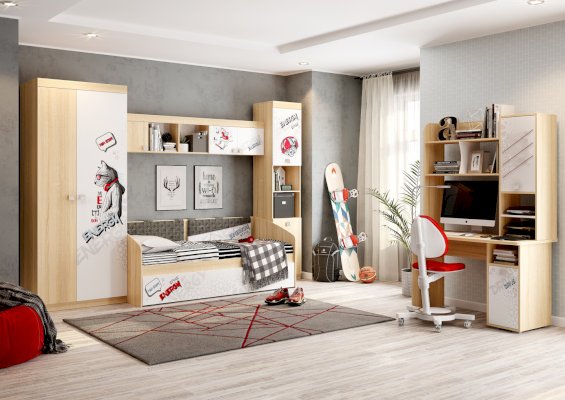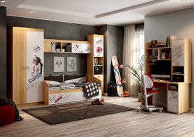 Детская «Энерджи» - это стильная, современная детская, которая понравится каждому ребенку. Эффектный принтерный рисунок на фасадах выдержан в общем стилистическом решении, устойчив к истиранию и ультрафиолету.