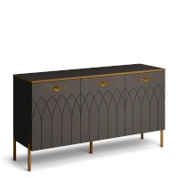 Большой комод - модное решение для современного интерьера. Мягкие серые оттенки «мокко» и «силк анис» сочетаются с золотым декором и яркой лицевой фурнитурой.