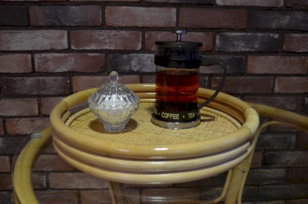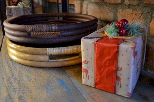 Круглый поднос из ротанга.