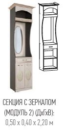 Секция с зеркалом ДхГхВ: 500х400х2200 мм