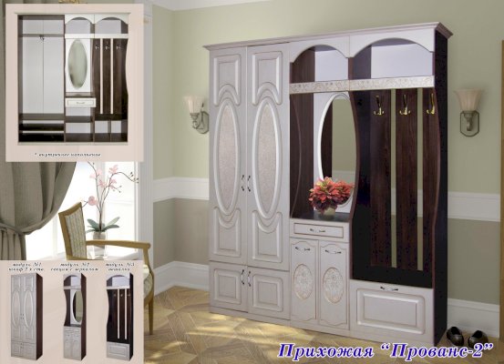 варианты цветовых решений Использование такой красивой мебели, как прихожая «Прованс-2», — это способ получать эстетическое удовольствие. Ведь этот комплект излучает ни с чем не сравнимый французский шарм. Спокойные цвета, натуральная фактура и классическая роскошь декора создают атмосферу уюта и предвкушения счастья. К достоинствам гарнитура также относятся надежность и эргономичность.