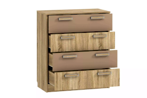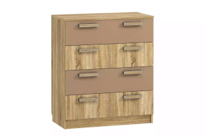 Комод «Акварель» -  прекрасный выбор для тех, кто любит практичность и комфорт. Комод обладает модным сочетанием материалов, цветов и подчеркивает настроение детства – радость новизны и жажду открытий. Четыре удобных выдвижных ящика – это огромный объем  для хранения белья, предметов одежды и аксессуаров.