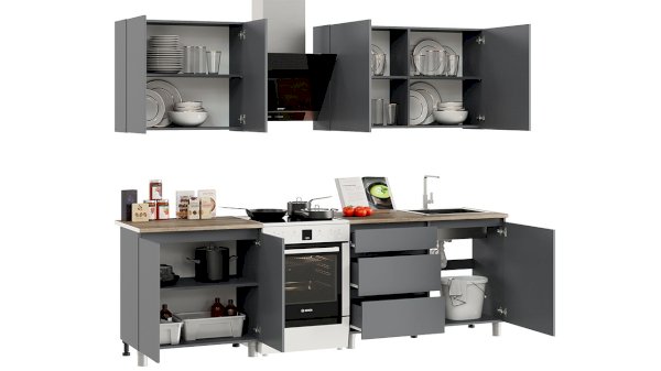 Сборка: нижнего корпуса шириной 1200 мм ящики всегда слева, верхних корпусов и стола 800 мм - универсальная