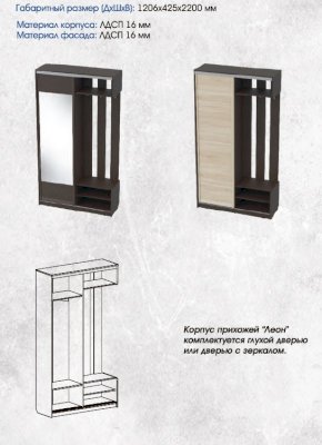 Модульная прихожая Леон (МБГ) - за 27 139 руб. в Донецке. Купите на сайте doneck.onlinemarketmebeli.ru или по телефону 8(800)505-30-63 уже сегодня! Уточнить наличие, комплектацию, актуальную цену можно бесплатно у менеджера ежедневно. Закажите Модульная прихожая Леон (МБГ) до конца акции! Доступна покупка в кредит, рассрочку. Доставим со склада или на заказ.