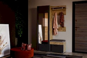 С вешалкой Livorno вся нужная верхняя одежда будет сразу в одном в месте. Модуль представляет из себя настенную панель с двумя крючками. В верхней части вешалки находятся полка для головных уборов и штанга для размещения одежды на вешалках-плечиках.