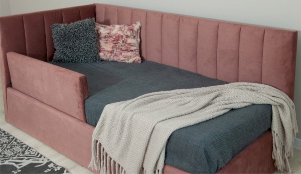 Мягкая кровать в минималистическом стиле подойдет для обустройства детской или подростковой комнаты. Вертикальная прострочка с углублениями по периметру спинки и изголовья подчеркивает геометричность модели, добавляет уюта и настраивает на спокойный отдых. Сглаженные углы, мягкие боковины и корпус гармонизируют пространство и исключают возможность получить травму. Спальное место на ортопедических ламелях на цельносварном основании из металла обеспечивает комфортный сон. Конструкция кровати позволяет собирать ее как с левым, так и с правым углом.