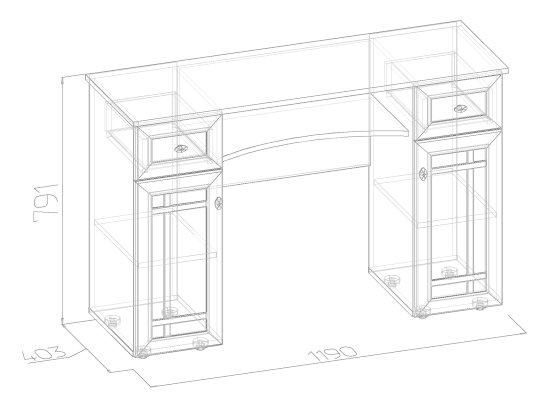 Организация пространства спальни часто упирается в необходимость увеличить проходы между кроватью и другими предметами мебели. Облегчить эту задачу сможет неглубокий (всего 40 см) туалетный столик. Благодаря широкой столешнице за ним можно удобно расположиться, чтобы сделать макияж. Спрячьте в выдвижные ящики разные мелочи, и детские ручки не накрасят помадой обои. За рамочными фасадами просторная ниша с полкой, регулируемой по высоте. Полка под столешницей с фигурным вырезом позволит комфортно сидеть за столиком человеку высокого роста. Сам по себе туалетный стол соответствует по высоте нормам ГОСТ и может использоваться как письменный или для работы с ноутбуком. Зеркало докупается отдельно, можно выбрать любое из имеющихся в коллекции Sherlock вариантов.