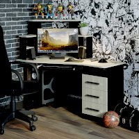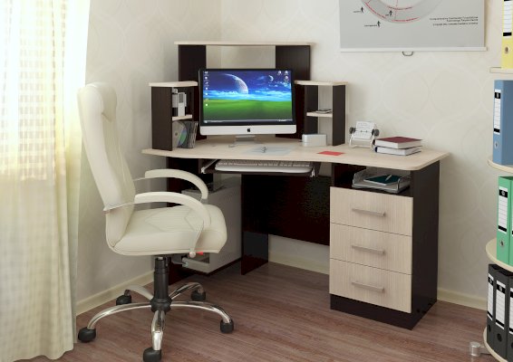 Угловой компьютерный стол Каспер – правильный выбор для обустройства рабочего места, причем как для ребенка, так и для взрослого. Модель имеет все необходимые зоны для размещения стационарного компьютера, а также угловую настройку и тумбу с выдвижным ящиками для хранения необходимых в работе или учебе вещей. Изделие выполнено в контрастном сочетании цветов и впишется в интерьер любого стиля.