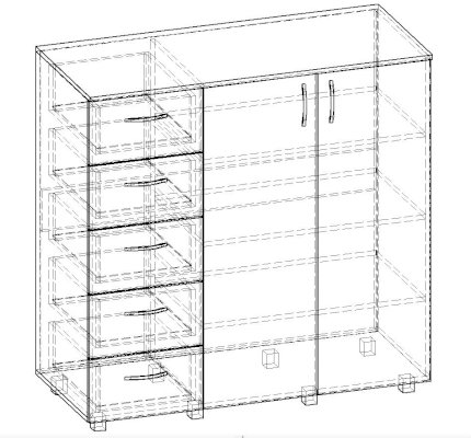 Данное изображение представлено в следующих цветах ЛДСП: корпус - Ясень Шимо тёмный, фасады - Ясень Шимо светлый.