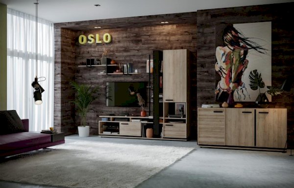 Тумба МЦН – функциональный модуль, который подходит не только для хранения вещей, но и для размещения телевизора. Тумба из трех отделений, за распашными дверцами которых полки, регулируемые по высоте. Изюминку тумбе придает необычный фасад в массивной раме и с раскладкой. Контрастные темные ручки из массива дерева подчеркивают цвет и текстуру натурального дерева. Регулируемые опоры компенсируют незначительные неровности пола.