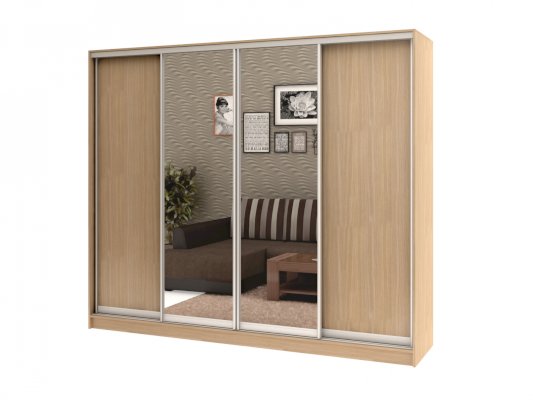 корпус - Дуб Феррара, фасады - Дуб Феррара (2 шт.) и зеркало (2 шт.), рамка двери и треки - Серебро матовое.