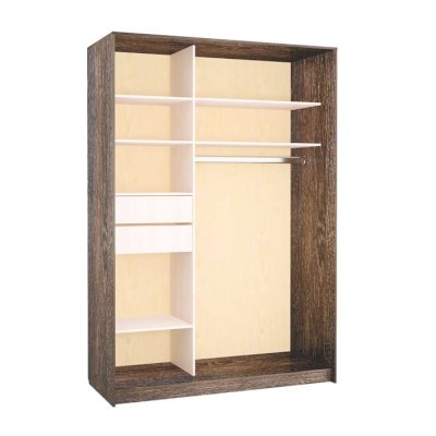 Состоит из: отделения со штангой для одежды, ящиков, полок, верхних отделений для крупногабаритных вещей.